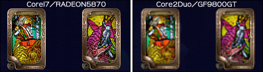 Corei7機(上)は、キャラも奥の山もとてもなめらかで、木々の葉っぱも違和感がありません。